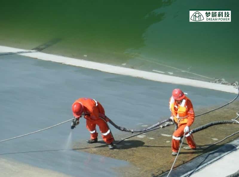 液体异氰酸酯在高压下与胺驱动的树脂溶液混合形成纯聚脲。异氰酸酯有反应活性,因为双共价键连接碳原子,氮原子和氧原子容易被破坏而形成单键,在碳原子周围形成更稳定的四面体结构。某些类型的聚脲由两部分溶液生成,这两种溶液在高温高压(3000psi,65℃)下由特殊设计的喷雾装置混合生成。使用时,极好的化学交联性产生致密而弹性的表面。高密度使得涂层几乎不受磨损、水和化学品的影响。纯聚脲涂料迅速固化并形成固体表面,不到一分钟内即可在其上行走而不会受损伤。另一优点是在倾斜或垂直表面上喷涂聚脲厚度达到6000微米(或更厚)时不会产生流挂。厚聚脲涂层表面易于维护、清洁或必要时的重涂。环氧树脂和油漆形成固体刚性外壳,而纯聚脲涂料的弹性允许它与其下的基体结构随温度变化发生膨胀和收缩运动。